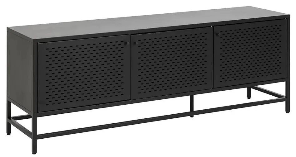 Moderní příborník SETH v elegantní matné černé barvě je ideálním doplňkem pro milovníky industriálního designu. Vyrobený z robustní oceli s práškovým povrchem, který mu dodává odolnost a moderní vzhled, se skládá z pevného horního panelu, stabilního rámu, tří praktických dvířek, dvou polic a pevné základny.