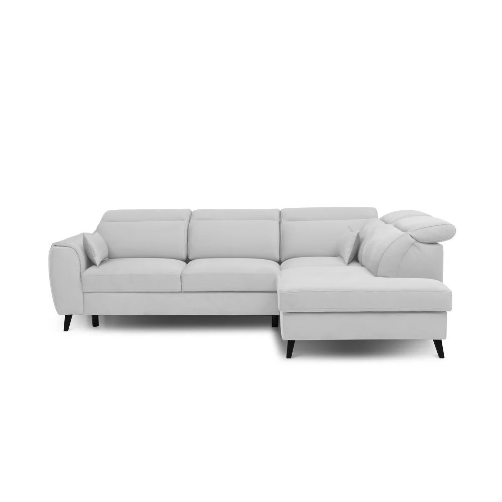 Elegantní rozkládací rohová sedačka s pravým provedením kombinuje styl s praktičností do každého obýváku. Potahová látka Savoi 1 je bílá a snadná na údržbu, zatímco zadní část sedačky je čalouněná, takže ji lze umístit i uprostřed místnosti bez nutnosti opření o zeď.