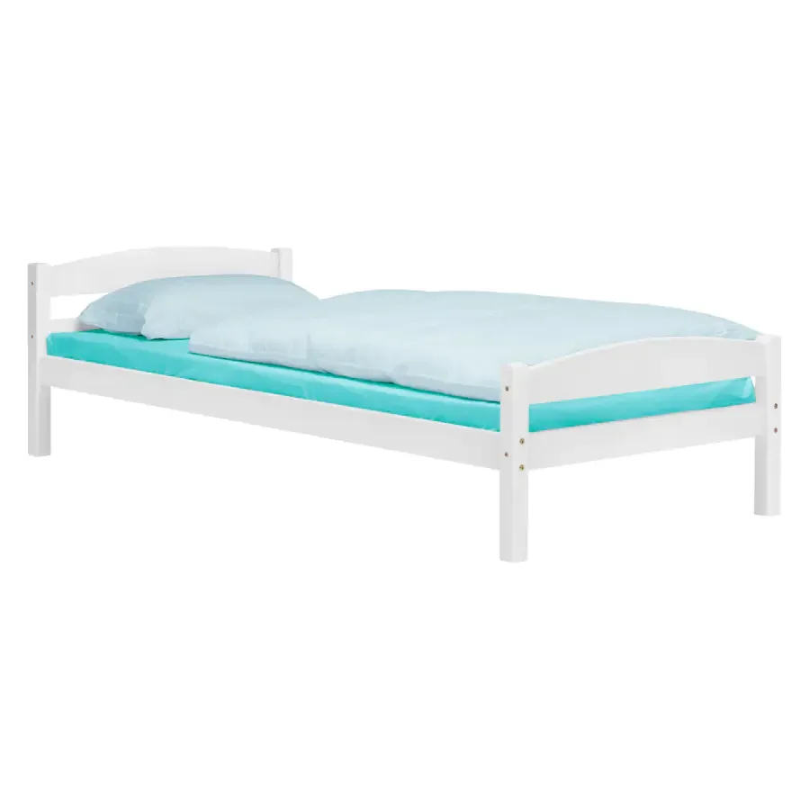 Jednolůžko 801B patří mezi oblíbené kousky nábytku pro moderní i tradiční ložnice. Je vyrobené z masiv borovice, díky čemuž nabízí pevnou konstrukci a příjemný vzhled. Výška sedu je 42 cm, což zajišťuje pohodlné sezení i vstávání. Postel je dodávána bez roštu a matrace; doporučený rozměr matrace je 90 × 200 cm. Dodání probíhá v demontovaném stavu, což usnadňuje přepravu i montáž. Lůžko lze doplnit praktickým nočním stolkem, ideálním pro odložení knih a lampičky před spaním. Ideální volba do dětského nebo studentského pokoje, snadno se čistí a svým bílým lakem působí svěže a nadčasově.