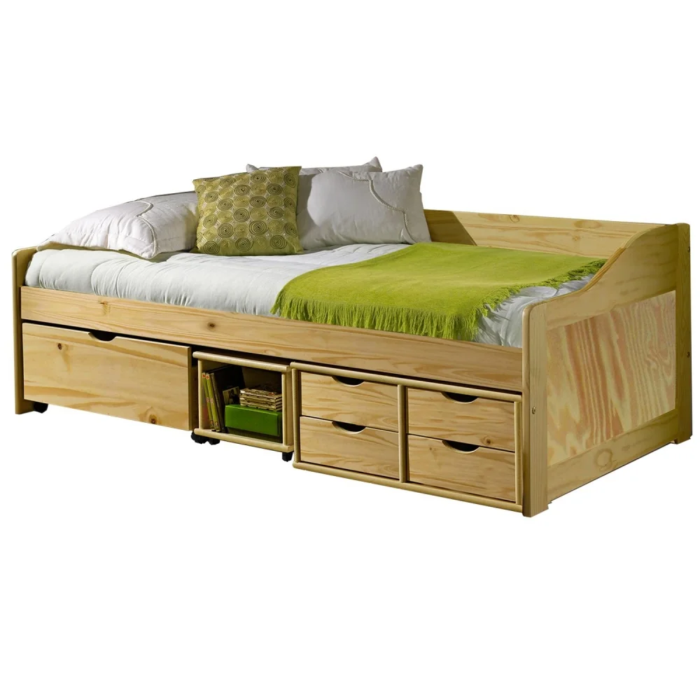 Jednolůžko s úložnými prostory z masivní borovice 205×97 cm Postele