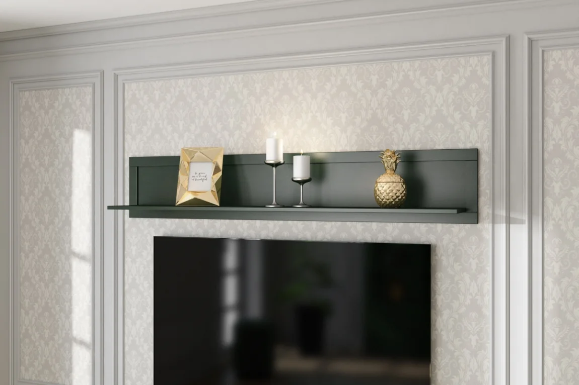 Praktická závěsná police pro pořádaný úložný prostor a dekoraci v obýváku či pracovně. Jejím barevným provedením kombinuje svěží zelenou s dekorem dub Lefkas, čímž vzniká moderní vzhled interiéru.