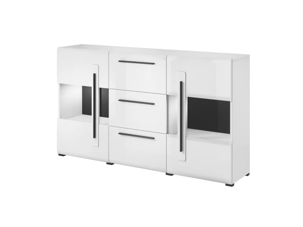 Komoda JEOLLA Typ 2 s uspořádáním 2D3S v bílé lesklé úpravě představuje praktické úložné řešení pro každý pokoj. Rozměry: šířka 180 cm, hloubka 39 cm a výška 103 cm; laminovaný povrch zajišťuje snadnou údržbu a odolnost vůči každodennímu provozu.