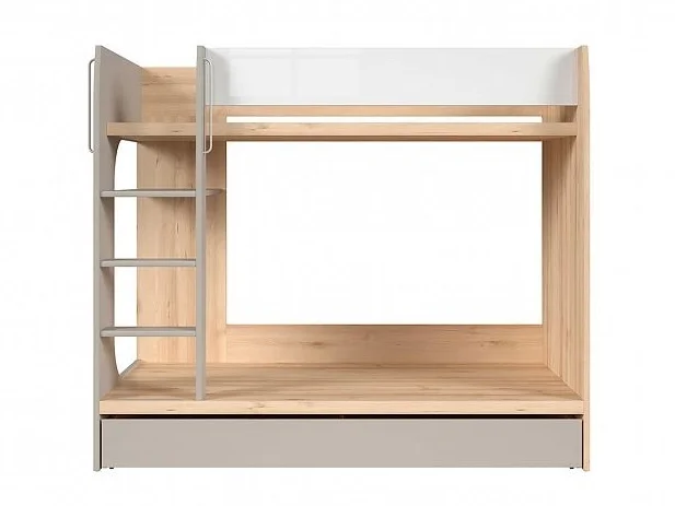 Patrová postel Jerimoth kombinuje pohodlné spaní s praktickým úložným prostorem. Úložný systém je tvořen dvěma oddělenými zásuvkami, které šetří místo a usnadní organizaci ložnic. V ceně není zahrnuta matrace; pro tuto konstrukci se hodí matrace o rozměru 80 × 180 cm. Korpus postele je vyroben z kombinace dřevotřískové desky, HDF desky a povrchových fólií s melaminem; přední část je z podobných materiálů, esteticky sladěných s celkem. Rozměry jsou 184,5 cm na šířku, 159,5 cm na výšku a 96,5 cm na hloubku. Dodáváno v demontu, s 5letou zárukou pro jistotu a klid při nákupu. Díky barevnému uspořádání buk iconic / bílý lesk / šedá působí moderně a snadno se sladí s různými styly interiéru.