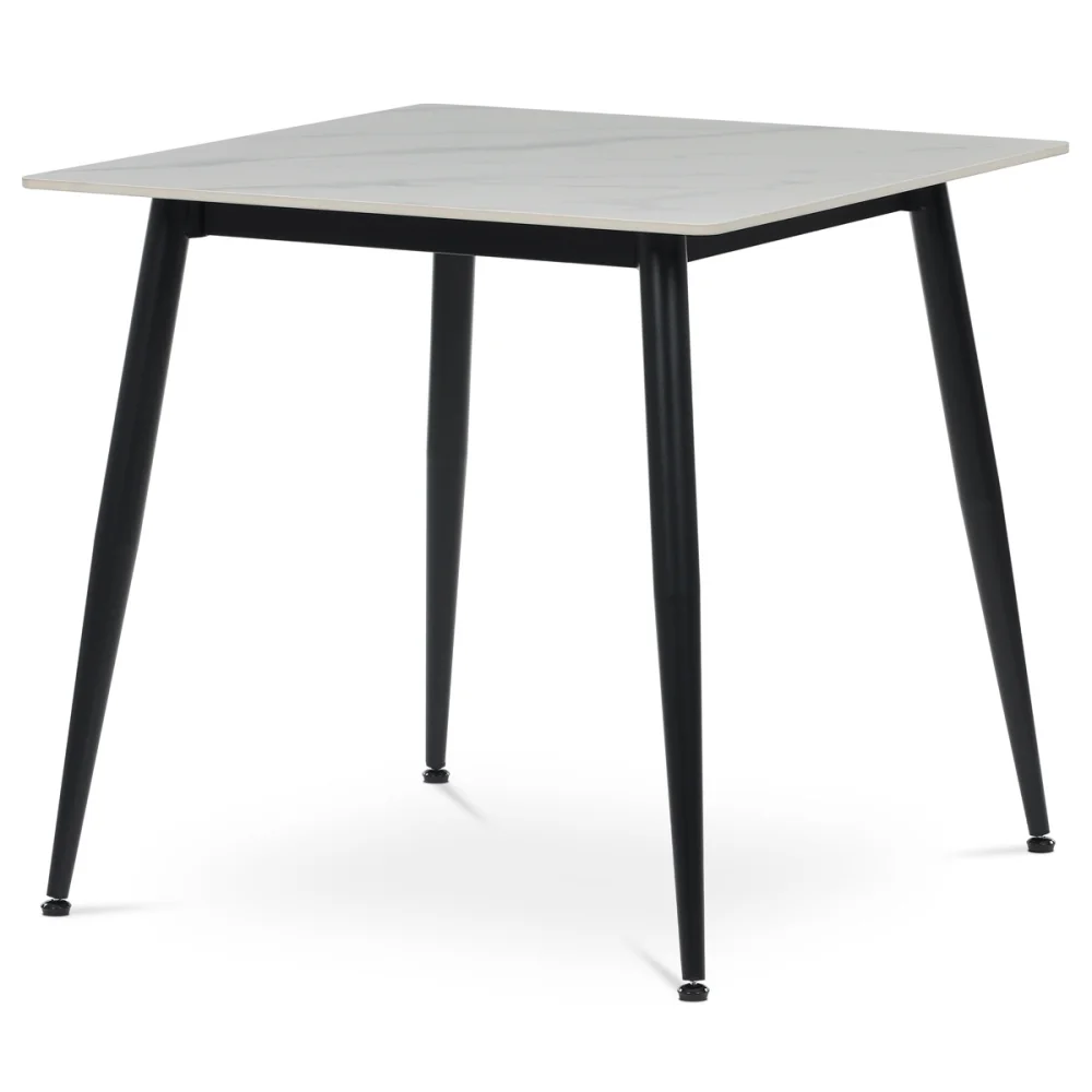 Stylový jídelní stůl BELZANZAN se skvěle hodí do současného interiéru s čistými liniemi. Keramická deska s mramorovým dekorem působí luxusně a zároveň je praktická na údržbu. Stabilní černé kovové nohy vytvářejí kontrast a dodávají pokoji jemný šmrnc. Čtvercový tvar je ideální pro menší jídelny a kuchyňské kouty, díky svým rozměrům 80 x 80 cm zabere minimum místa, ale zároveň poskytne pohodlné stolování. Tento stůl se stane výrazným prvkem moderního prostoru a nabídne dostatek místa pro každodenní stravování. Barva: deska – bílý mramor, nohy – černé. Rozměry (šířka x hloubka x výška): 80 x 80 x 75 cm. Materiál: deska keramika, nohy kov. Dodání probíhá v demontu, montáž zvládnete během chvíle a stůl tak snadno uložíte i do menších bytů.