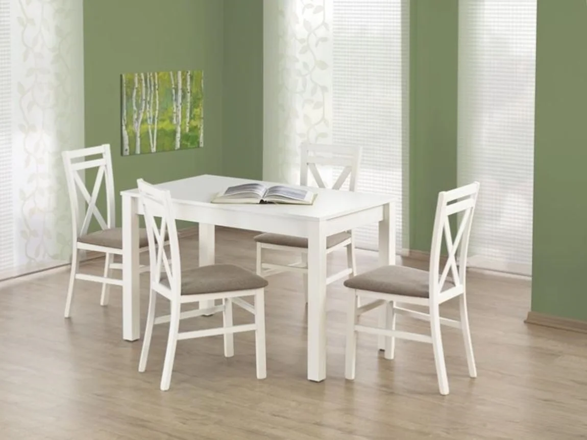 Jídelní stůl Hadar v čistém bílém provedení působí elegantně a nadčasově. Je vyroben z laminovaného MDF, což zajišťuje dlouhou životnost a snadnou údržbu. Rozměry 120 × 68 × 76 cm předurčují stůl pro pohodlné stravování čtyř až pěti členů rodiny.