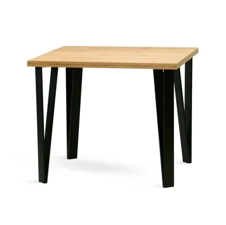 Jídelní stůl KARLOS přináší do moderní jídelny industriální nádech. Kovová podnož v černé barvě vytváří pevný základ, zatímco deska z lamina zaručuje dlouhou životnost a snadnou údržbu.