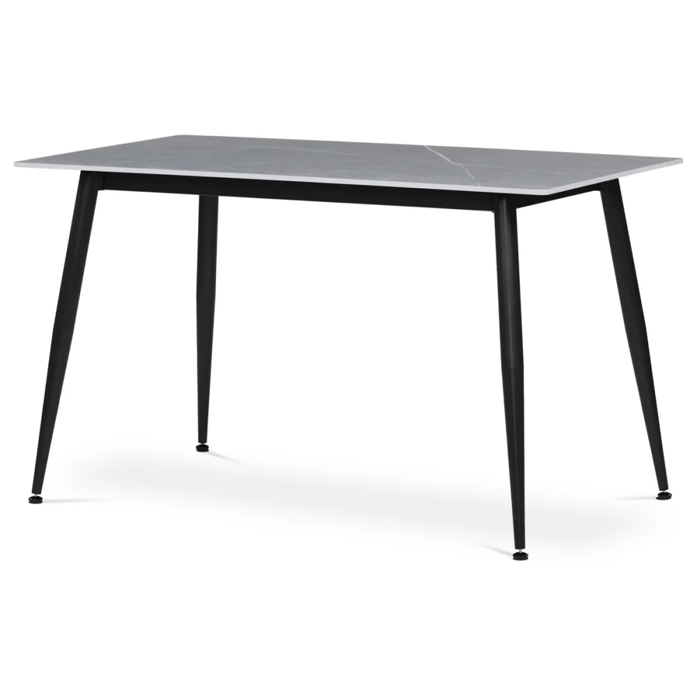 Materiál kombinuje slinutý kámen a kov pro trvanlivost a snadnou údržbu. Barva je černá s imitací mramoru, která dodá eleganci do jídelního prostoru. Rozměry činí 130 cm na šířku, 76 cm na výšku a 70 cm na hloubku, tedy pohodlný prostor pro běžné stravování. Dodání je v rozloženém stavu.