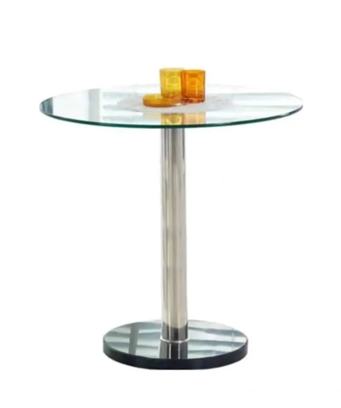 Jídelní stůl MARKAB kombinuje desku z čirého skla s nohami z chromované oceli, čímž vzniká lehký a elegantní kousek do každé jídelny. Deska je vyrobena z odolného čirého skla a konstrukce z chromované oceli zajišťuje pevný základ pro každodenní použití. Rozměry: průměr 80 cm, výška 74 cm. Židle nejsou součástí balení. Dodání probíhá v demontu. Díky svému minimalistickému provedení je vhodný pro moderní i klasické interiéry a snadno se čistí, takže vám dlouho vydrží krásný vzhled.
