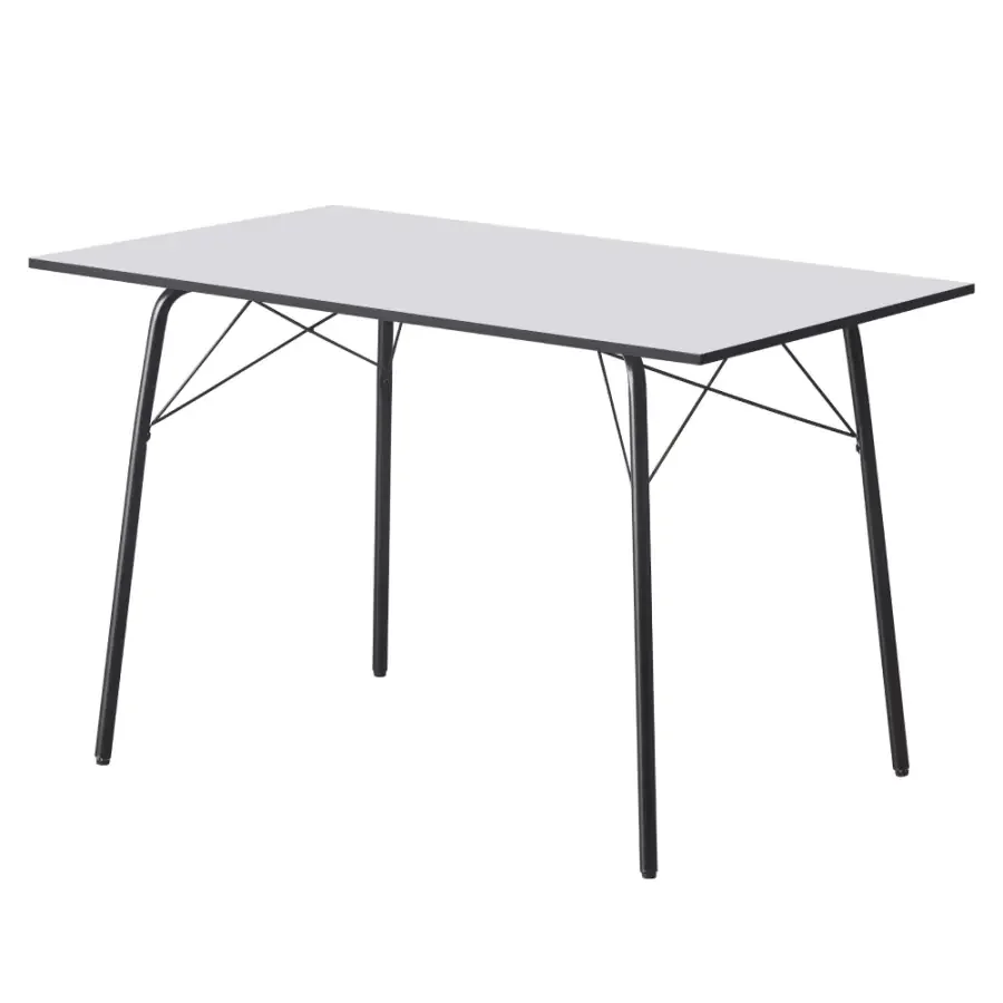 Stylový a praktický jídelní stůl NALAK Typ 2 s minimalistickým designem se hodí do každé moderní jídelny. Vrchní deska z MDF v bílé barvě působí svěže a snadno se udržuje. Čtyři černé kovové nohy zajišťují pevnou a stabilní podporu pro každodenní použití.