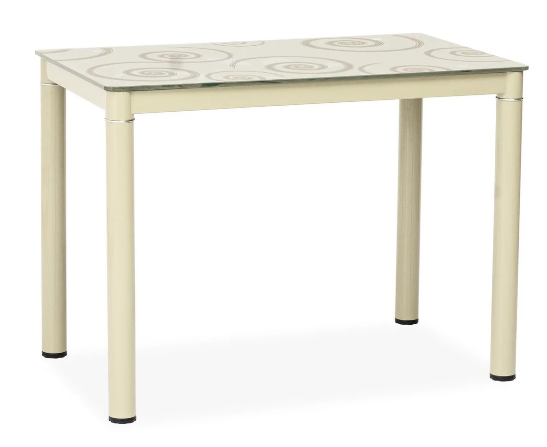 Moderní jídelní stůl NEFON nabízí elegantní a praktické řešení pro každou jídelnu. Nohy stolu jsou vyrobeny z kovu a lakované krémovou bílou barvou, zatímco deska je z tvrzeného skla v podobném krémovém odstínu.