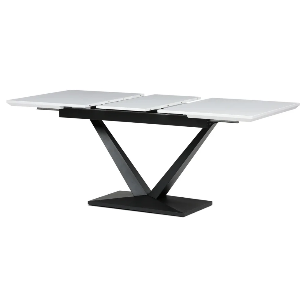 Jídelní stůl SOLMAR – rozkládací, bílá matná MDF deska, černé kovové nohy Jídelní stoly