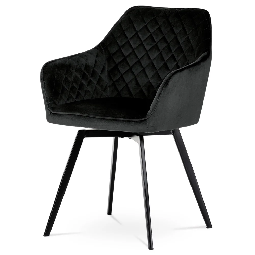 Jídelní židle Bassie v černé barvě zaujme díky industriálnímu designu a pevné kovové konstrukci s matnými nohami. Rozměry 56 x 57 x 85 cm (sedák 50 cm) zajišťují pohodlné sezení i při delším používání. Skořepina sedáku a opěradla je potažena kvalitní látkou v temném matu s výrazným kosočtvercovým prošitím a paspulemi po obvodu, které dodávají židli stylový detail a zároveň usnadňují údržbu. Nohy tvoří čtyři kónické kovové prvky s kvalitním práškovým nástřikem v černé matné barvě a ochranné černé kluzáky, které šetří podlahu. Nosnost až 110 kg zaručuje stabilitu při každodenním používání. Bonusem je otočný a vratný mechanismus, který umožňuje otáčení o 90° doleva i doprava a vždy vrací sedák do původní polohy, čímž zůstane sestava u stolu hezky srovnaná. Dodáváno v demontu a připravena k rychlé montáži.