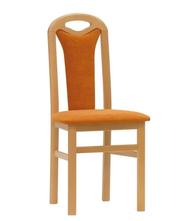 Upozornění: ilustrativní foto. K dispozici 4 kusy. Židle Berta je vyrobena z masivního buku s olšovým mořením; sedák i opěrka jsou čalouněné a mají praktický výřez pro snadnou manipulaci.