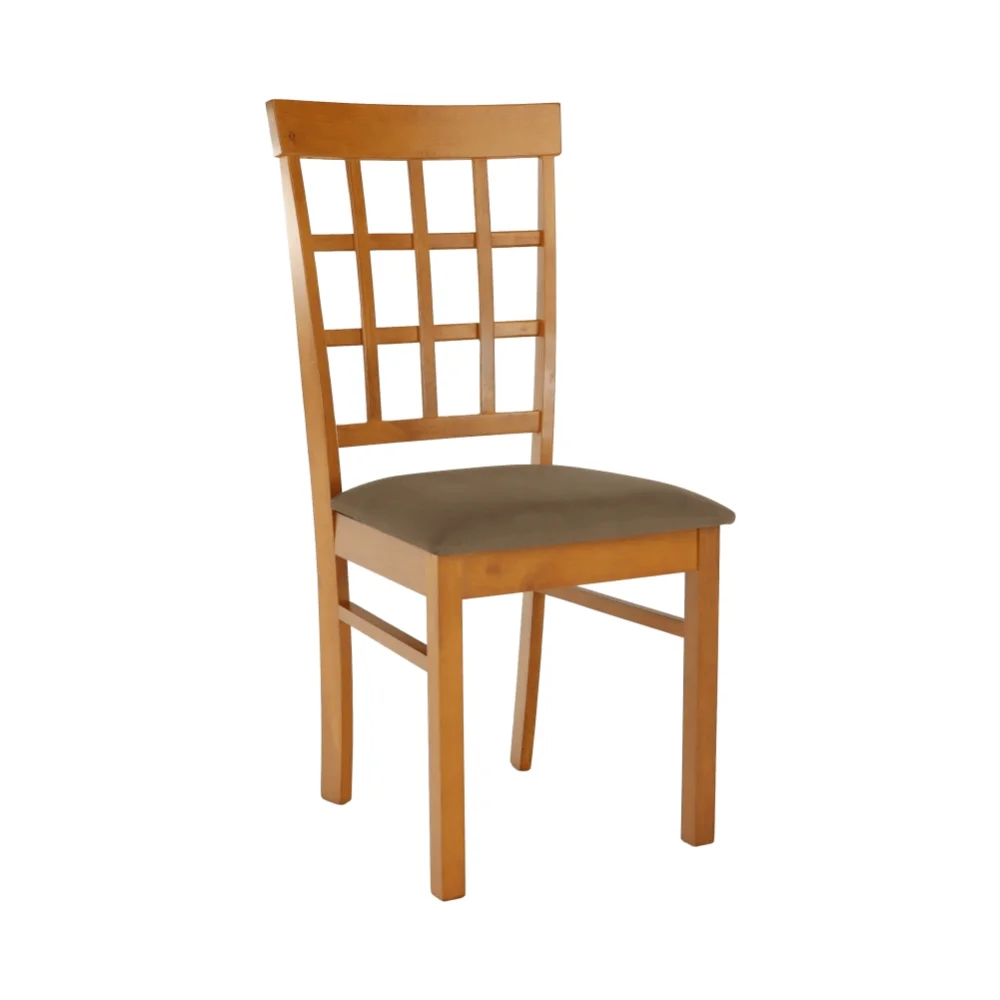Jídelní židle MOJSLAV v elegantní třešňové povrchové úpravě je zárukou nadčasového vzhledu, který zapadne do různých stylů jídelny. Je vyrobena z kvalitního dřeva v odstínu třešeň a nabídne pohodlné sezení díky měkkému sedáku potaženému béžovohnědou textilií.