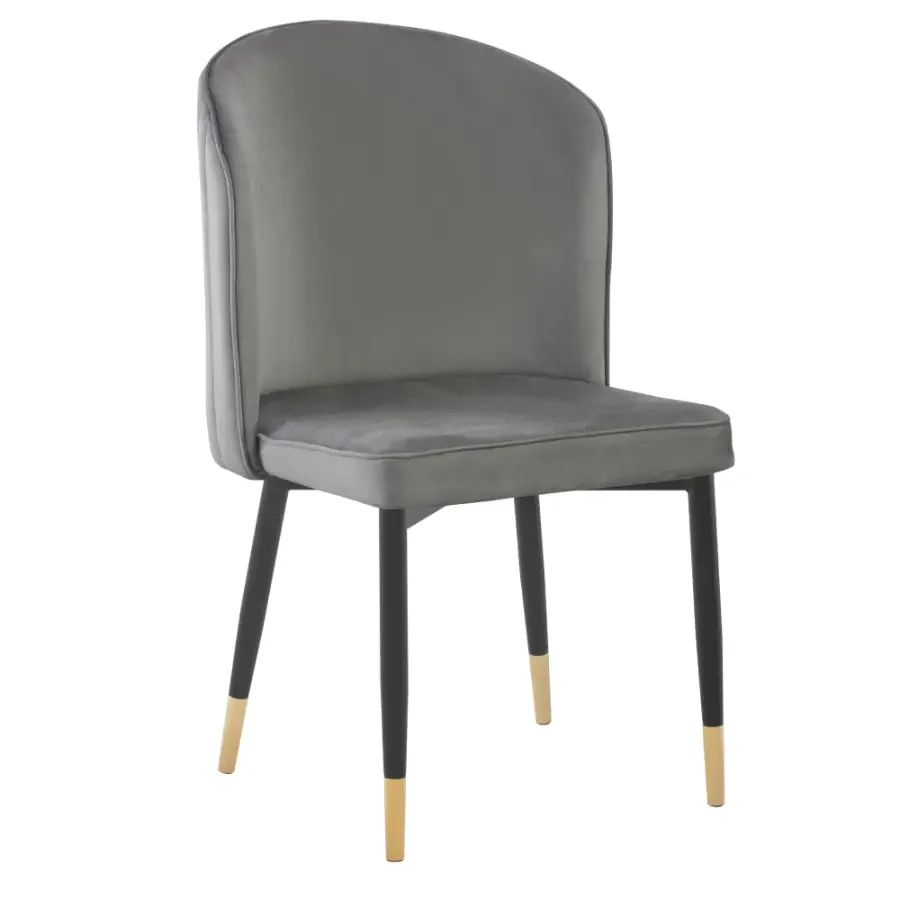 Čalounění z jemné sametové látky v šedé barvě působí luxusně a příjemně na dotek. Stabilní základ tvoří černé kovové nohy s jemným zlatým detailem ve spodní části, který vizuálně dotváří prémiový vzhled. Díky nadčasovému designu se UDAJE hodí jak do jídelního koutu, tak do stylově vybaveného obýváku. Materiál: velvet látka/kov. Rozměry (Š x H x V): 49 x 47 x 87 cm; výška sedu 49 cm; hloubka sedu 45 cm; šířka sedu 44 cm; výška zádové opěrky 47 cm; šířka zádové opěrky 51 cm; nosnost 90 kg. Dodáváno v demontu.