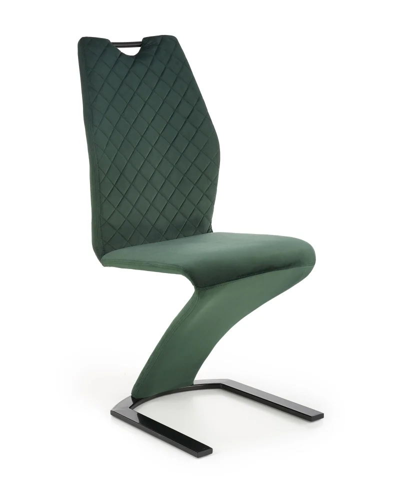 Jídelní židle VASANA představuje spojení moderního designu a pohodlí do vašeho jídelního prostoru. Čalounění tmavě zelenou sametovou látkou působí luxusně a dodává židli nadčasový vzhled.