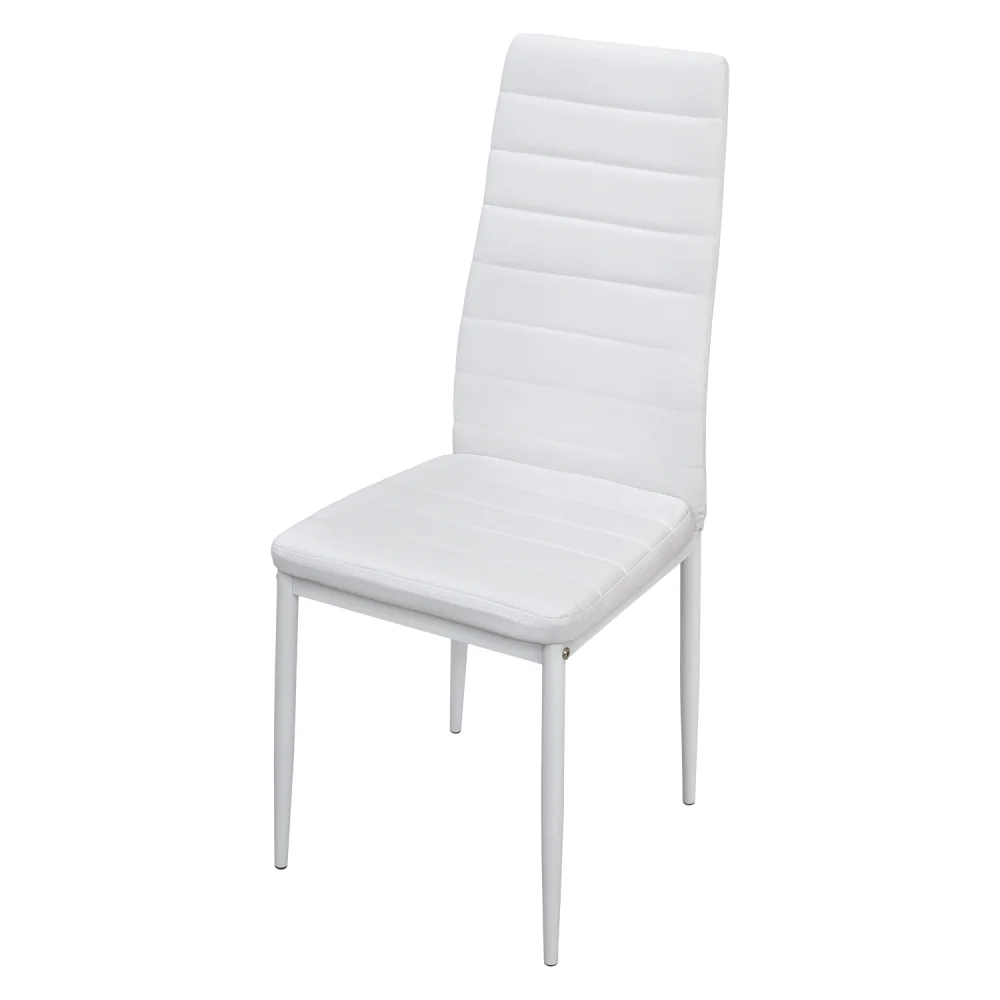 Jídelní židle VINACEUM v bílé barvě přináší elegantní kombinaci pohodlí a moderního vzhledu do vašeho jídelního prostoru. Potah je z imitace kůže, která působí luxusně a je snadno udržovatelná, zatímco pevná kovová konstrukce a nohy zajišťují stabilitu i při každodenním používání.