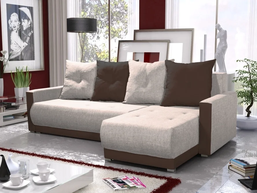 Elegantní rohová sedačka KAISON BIS 6 nabízí praktický rozkládací systém a úložný prostor, který usnadní organizaci vašeho prostoru. Potahy v provedení Sawana v krémové a hnědé variantě dodávají sedačce nadčasový vzhled a snadno se udržují; zadní strana je potažena jednotnou látkou, takže rohovou sedačku můžete postavit i volně do prostoru bez nutnosti doplňujících stěn.