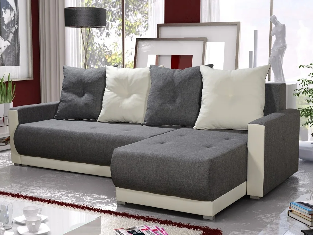 Rozkládací rohová sedačka KAISON BIS 9 je k dispozici ve dvou barevných variantách: šedá (sawana 05) a krémová (sawana 01). Díky potažení zadní části je možné sedačku postavit volně v prostoru, bez nutnosti opření o zeď.