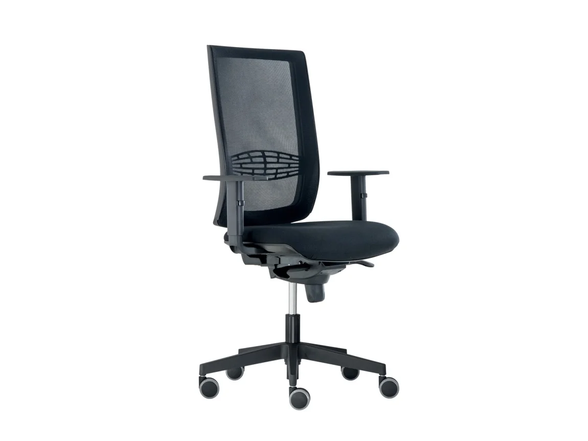 Elegantní kancelářská židle BATIS v černé barvě spojuje komfort s ergonomickými prvky pro každodenní práci. Potah z odolné látky Bondai 8033 v černé provedení zajišťuje dlouhodobou odolnost a příjemný kontakt se sedací částí.