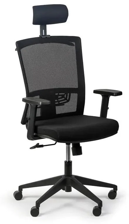 Elegantní a ergonomická kancelářská židle FELIX v černé barvě je ideální volbou pro dlouhé pracovní hodiny. Sedák s pohodlným potahem z odolné látky a prodyšný opěrák ze síťoviny zajišťují komfort a správnou ventilaci.