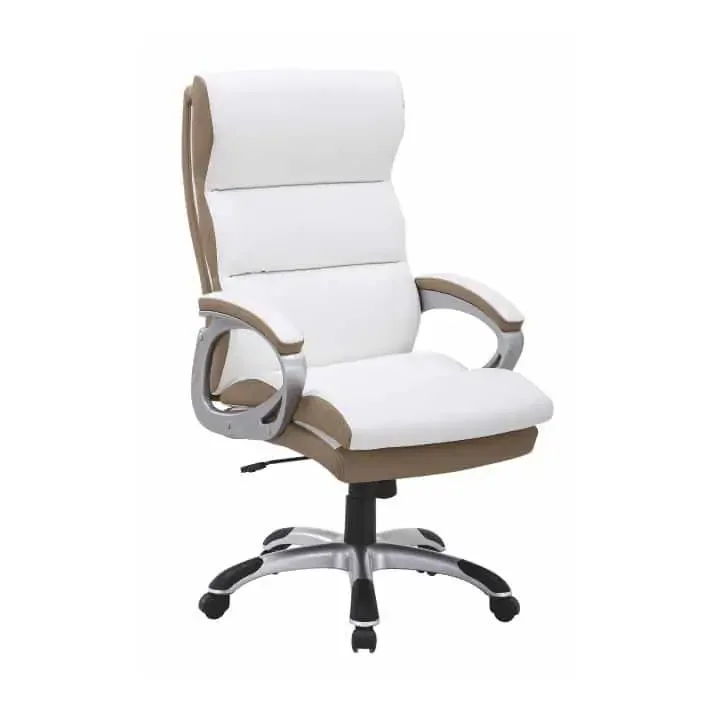 Konstrukce židle kombinuje PU ekokůži a plast pro moderní vzhled a snadnou údržbu. Sedák a opěrák s područkami jsou čalouněny v bílohnědém provedení, zatímco kříž a područky jsou plastové. Židle se dodává v demontovaném stavu; rádi pro vás zajistíme smontování. Před prvním použitím si prosím přečtěte návod k použití. Je určena pro jednosměnný provoz a pro běžné kancelářské prostředí i domácnost.