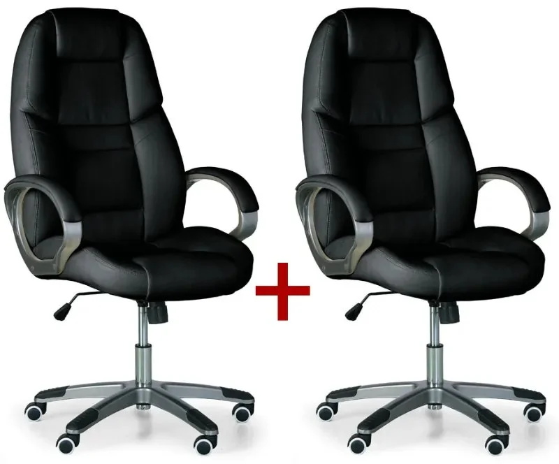 Čalouněné područky poskytují optimální oporu pro vaše lokty, zatímco široký sedák o šířce 53 cm a hloubce 51 cm spolu s vysokým operadlem o výšce 73 cm zajistí komfort i při dlouhodobé práci. Stabilitu zajišťuje pevný plastový kříž odolný do 150 kg, a kolečka vhodná pro tvrdé podlahy, jako jsou plovoucí podlahy, dlažba nebo beton. Tento model je ideální volbou pro každé moderní pracoviště a nyní si můžete pořídit dvě kusy za cenu jednoho, což ocení každý, kdo hledá kvalitní a ekonomické řešení.