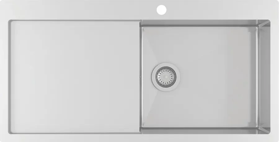 Minimální šířka podskříňky: 600 mm Velikost dřezu: 1000 x 510 mm Hloubka: 200 mm Typ instalace: na povrch desky nebo do roviny Tento dřez kombinuje moderní vzhled s praktickým použitím, což z něj činí ideální volbu pro každou kuchyň.