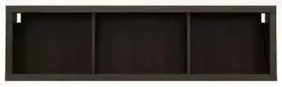 Závěsná skříňka ze systému KASPIAN kombinuje moderní vzhled s praktickým uspořádáním; má tři oddělené části a celkovou šířku kolem 143,5 cm, zadní stěna obsahuje výřezy pro snadné zavěšení.