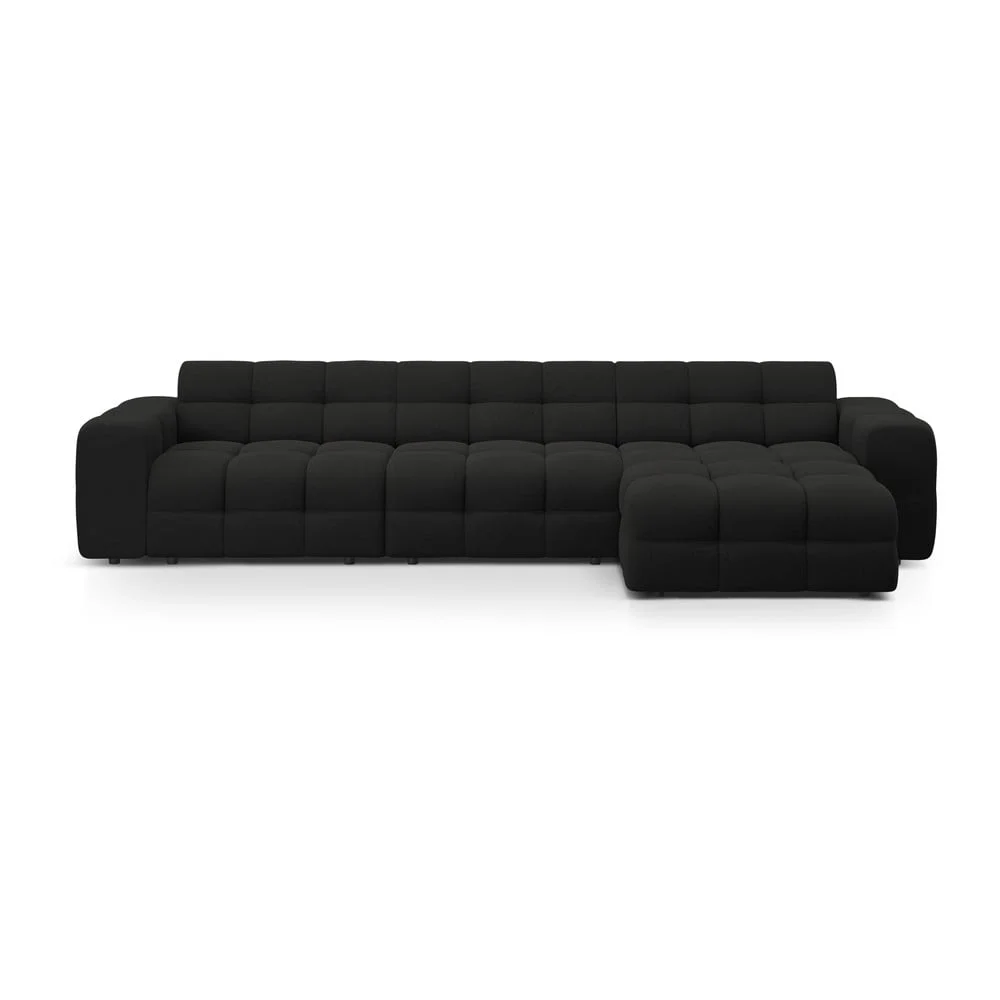 Kendal Černá Rohová Pohovka s Lenoškou Rohové sedací soupravy