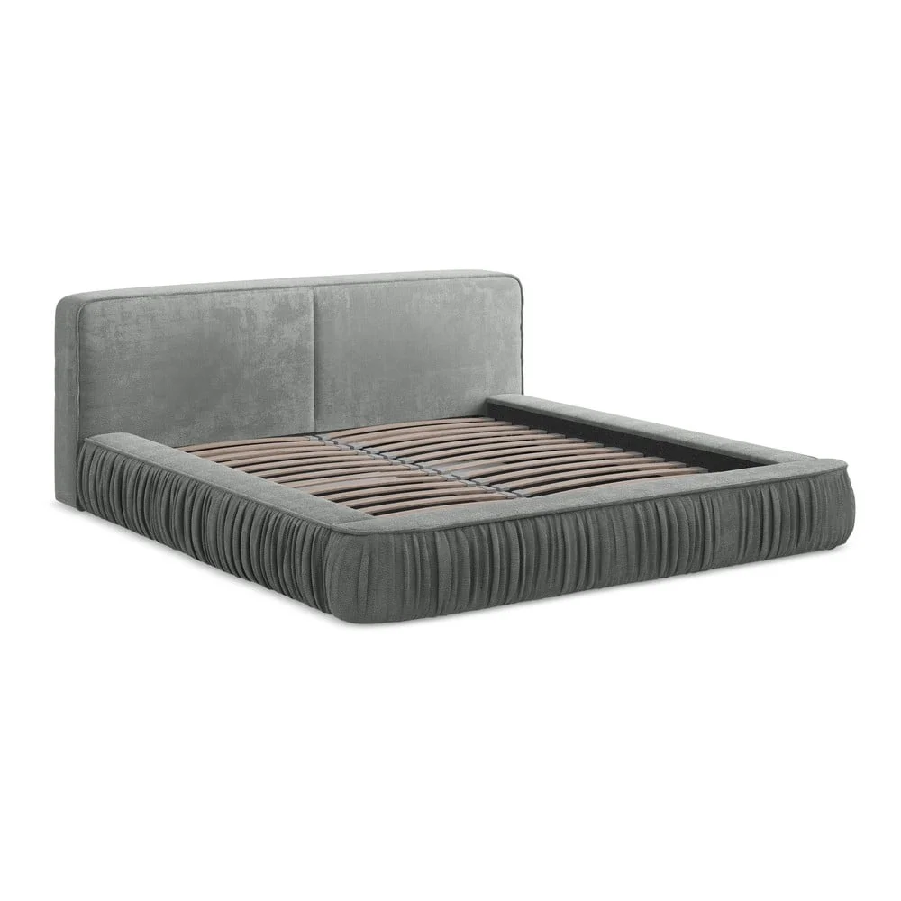 Keoni Šedá čalouněná dvoulůžková postel 160x200 cm s úložným prostorem Dvoulůžkové postele