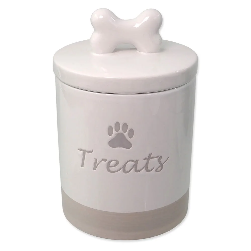 Udělte svému mazlíčkovi radost s praktickou dózou na pamlsky od značky Plaček Pet Products. Tato stylová keramická nádoba s motivem psí tlapky a nápisem Treats nabízí dostatek prostoru o objemu 1,5 litru, ideální pro skladování oblíbených pamlsků.