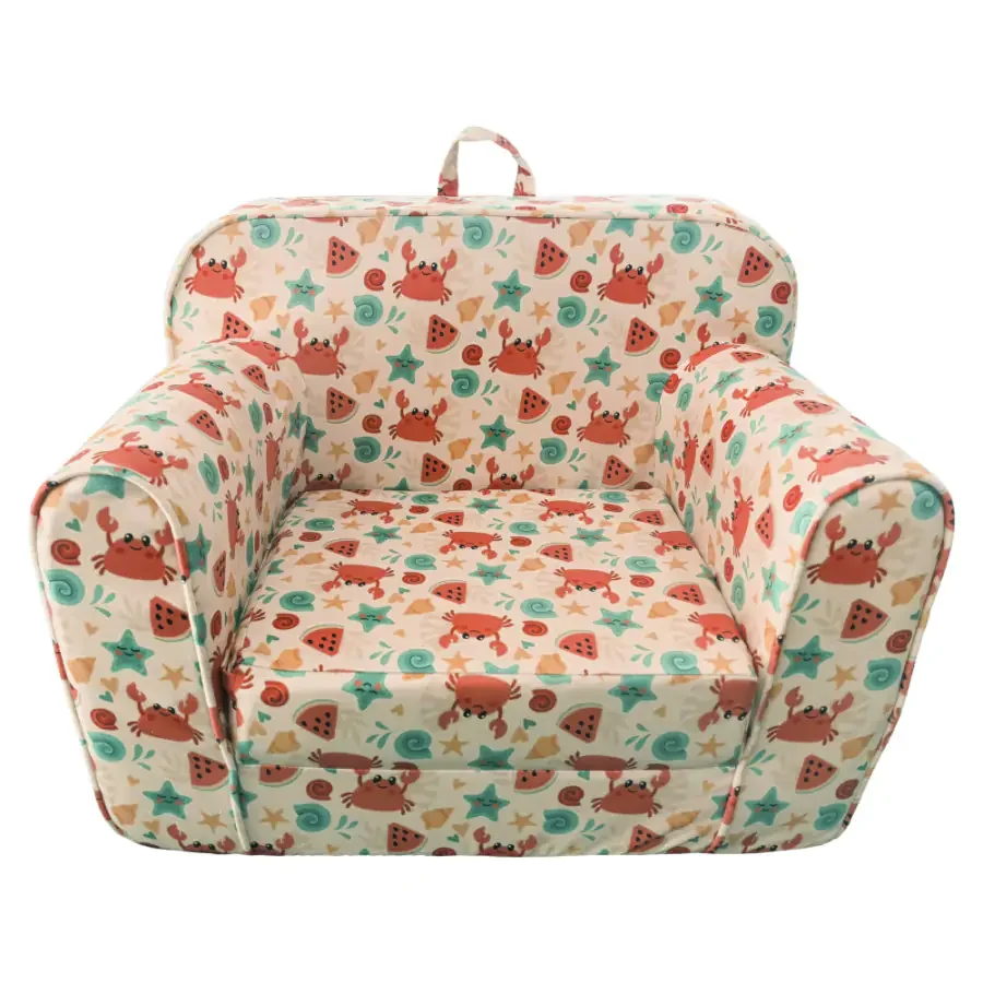 Dětské rozkládací křesílko KIDY s hravým mořským motivem je ideálním místem pro odpolední odpočinek, čtení i zábavné hry. Je vyrobené z měkké látky a uvnitř skrývá kompresní pěnu, která se dá rozložit do pohodlné matrace.