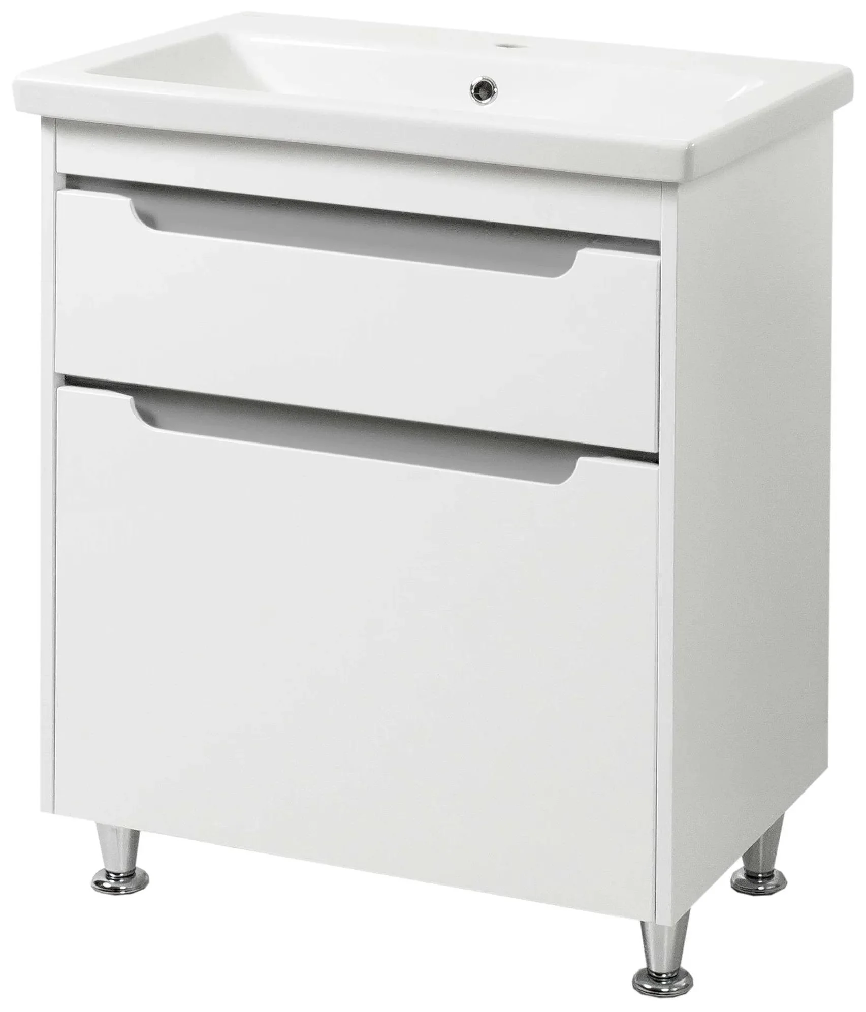 Moderní koupelnová skříňka Lavedo Valencia o rozměrech 70 x 85 x 45 cm nabízí elegantní řešení pro vaši koupelnu. Vyrobena z kvalitního lakovaného MDF s vysokým leskem a doplněna chromovanými nožičkami, které dodají celku stylový vzhled.