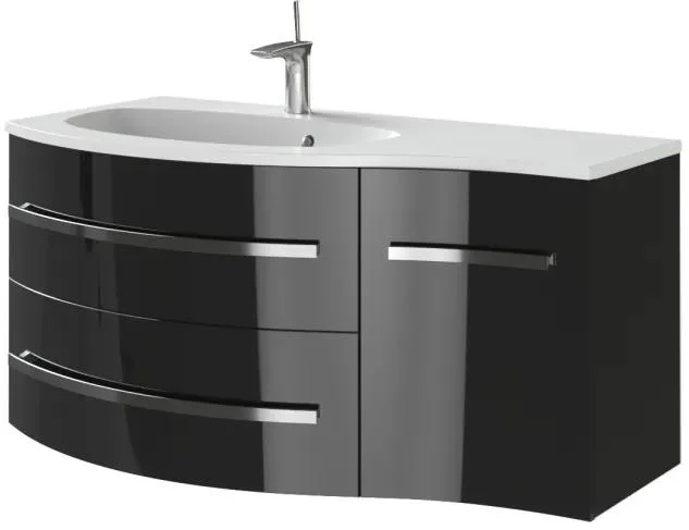 Elegantní a moderní koupelnová skříňka s umyvadlem Vanessa Black 110 v levé variantě je ideálním doplňkem každé stylové koupelny. Tato designová sestava kombinuje kvalitní materiály, jako jsou MDF desky s vysokým leskem v černé barvě a litý mramor pro umyvadlo, čímž zajišťuje nejen estetický vzhled, ale i dlouhou životnost.