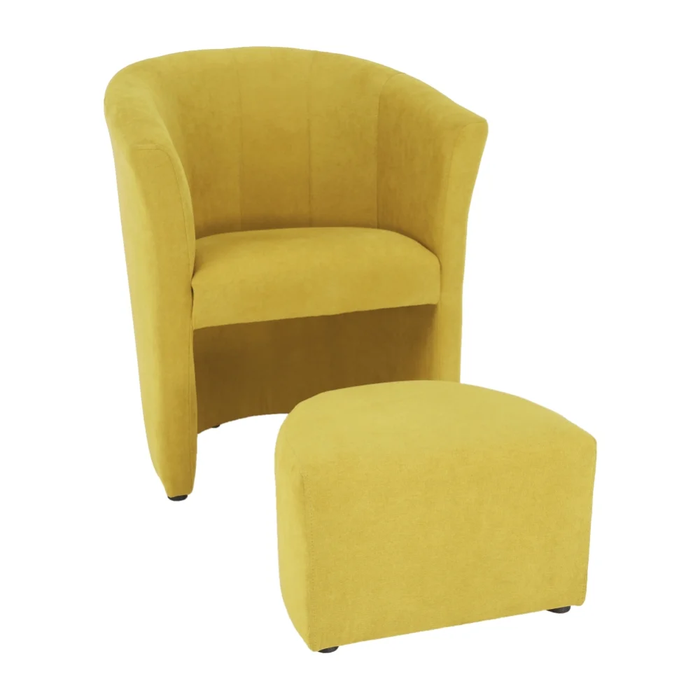 Klubové křeslo BENEDA s taburetem v hořčicové barvě představuje komfortní řešení pro odpočinek i relaxaci po náročném dni. Celočalouněná konstrukce zajišťuje příjemné posezení a taburet lze snadno zasunout pod křeslo, čímž šetří prostor a zůstává vždy po ruce.