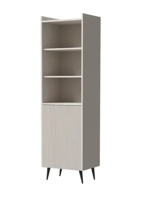 Knihovna/regál Adleta R1 je vyrobená z odolného laminátu v kašmírovém dekoru s jemnými lamelovými detaily, které dodávají nábytku nadčasový vzhled. Laminát je známý svou vysokou odolností a snadnou údržbou, díky čemuž je provoz s úložným prostorem pohodlný. Dodává se v demontu a v balení najdete montážní návod spolu se všemi spojovacími prvky. Celý systém Adleta spojuje elegantní design s praktickou funkčností a do prostoru vnáší svěží a tvořivou atmosféru. Snadno se přizpůsobí potřebám moderního obývacího pokoje. Sestava bytové stěny Adleta zahrnuje knihovnu, noční stolek, komodu a TV skříňky, dostupné v několika variantách, a zaujme také kašmírovými odstíny. Díky modulární konstrukci lze jednotlivé díly snadno upravit podle prostoru a vkusu, zatímco povrch lamina zůstává odolný, na dotek příjemný a snadno čistitelný.