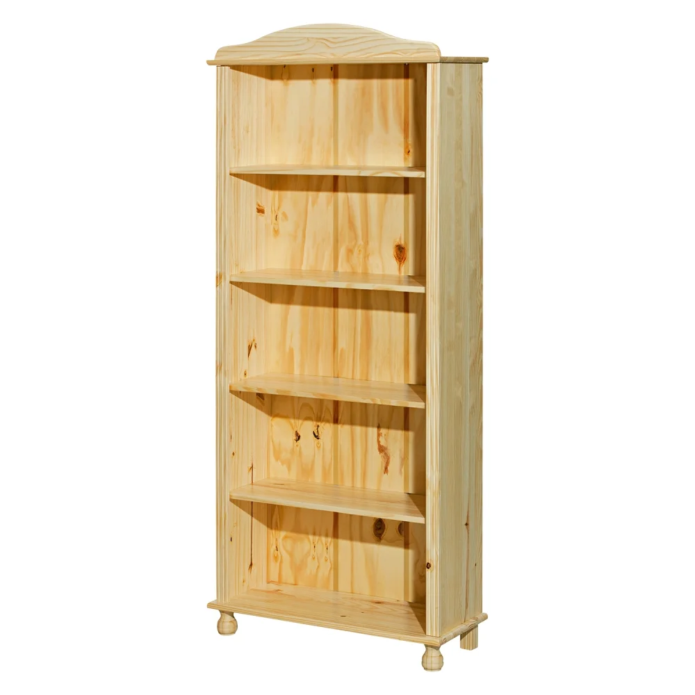 Tato knihovna je vyrobena z masiv borovice a má lakovaný povrch, který zvýrazňuje přirozenou barvu dřeva. Rozměry 77 cm šířky, 30 cm hloubky a 180 cm výšky poskytují dostatek prostoru pro knihy, trofeje i dekorace.