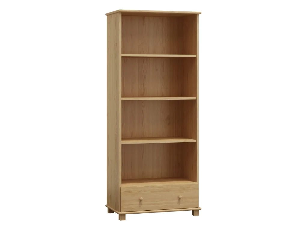 Praktická knihovna s šuplíkem je vyrobena z masiv borovice a deska má tloušťku 2 cm, což zajišťuje pevnou a odolnou konstrukci. Rozměry činí 80 x 190 x 42 cm (š x v x h), takže poskytuje dostatek místa pro knihy i drobné předměty.