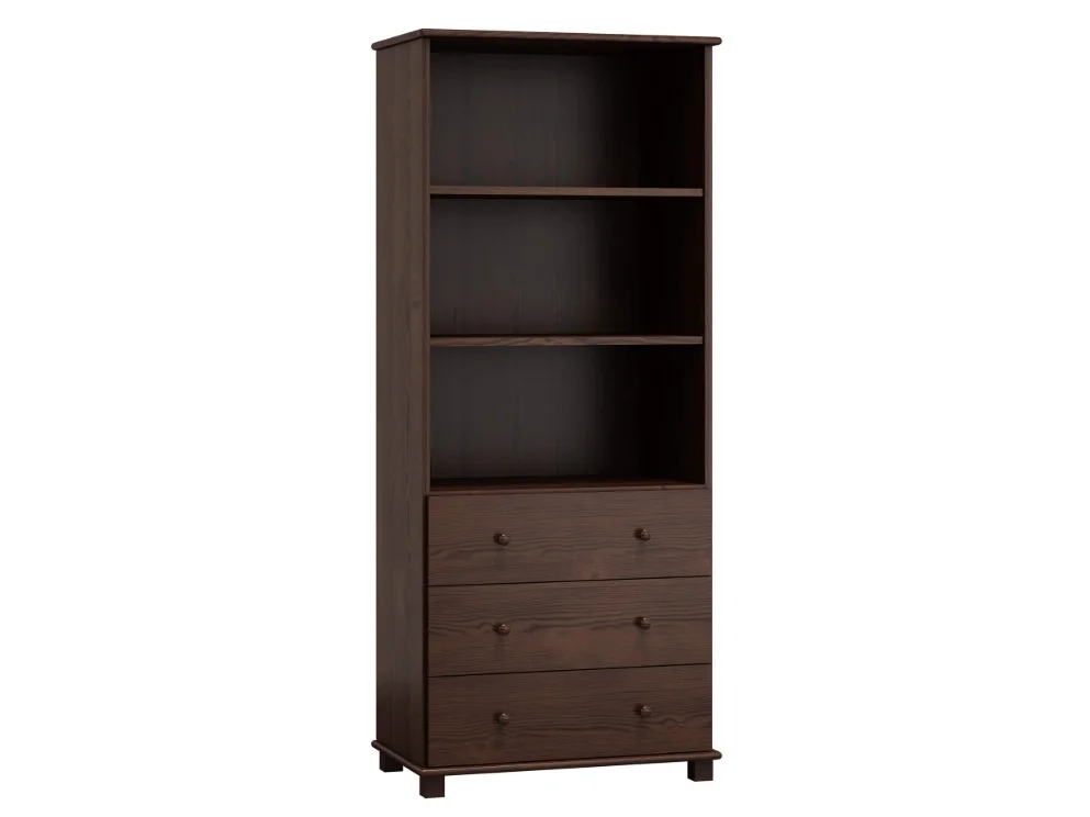 Elegantní policová knihovna TRAST 8 je vyrobená z masivní borovice a povrch má v odstínu ořech. Rozměry činí 80 × 190 × 42 cm a tloušťka desky dosahuje 2 cm, nohy jsou čtvercové 5 × 5 cm pro jistou stabilitu. Nabízí tři šuplíky a otevřené police, což usnadňuje organizaci knih, dokumentů i dekorací. Dodáváno v demontu a se zárukou 24 měsíců. Díky pevnému zpracování a přírodním materiálům je knihovna snadná na údržbu a hodí se do různých interiérů, od obývacího pokoje po pracovnu.