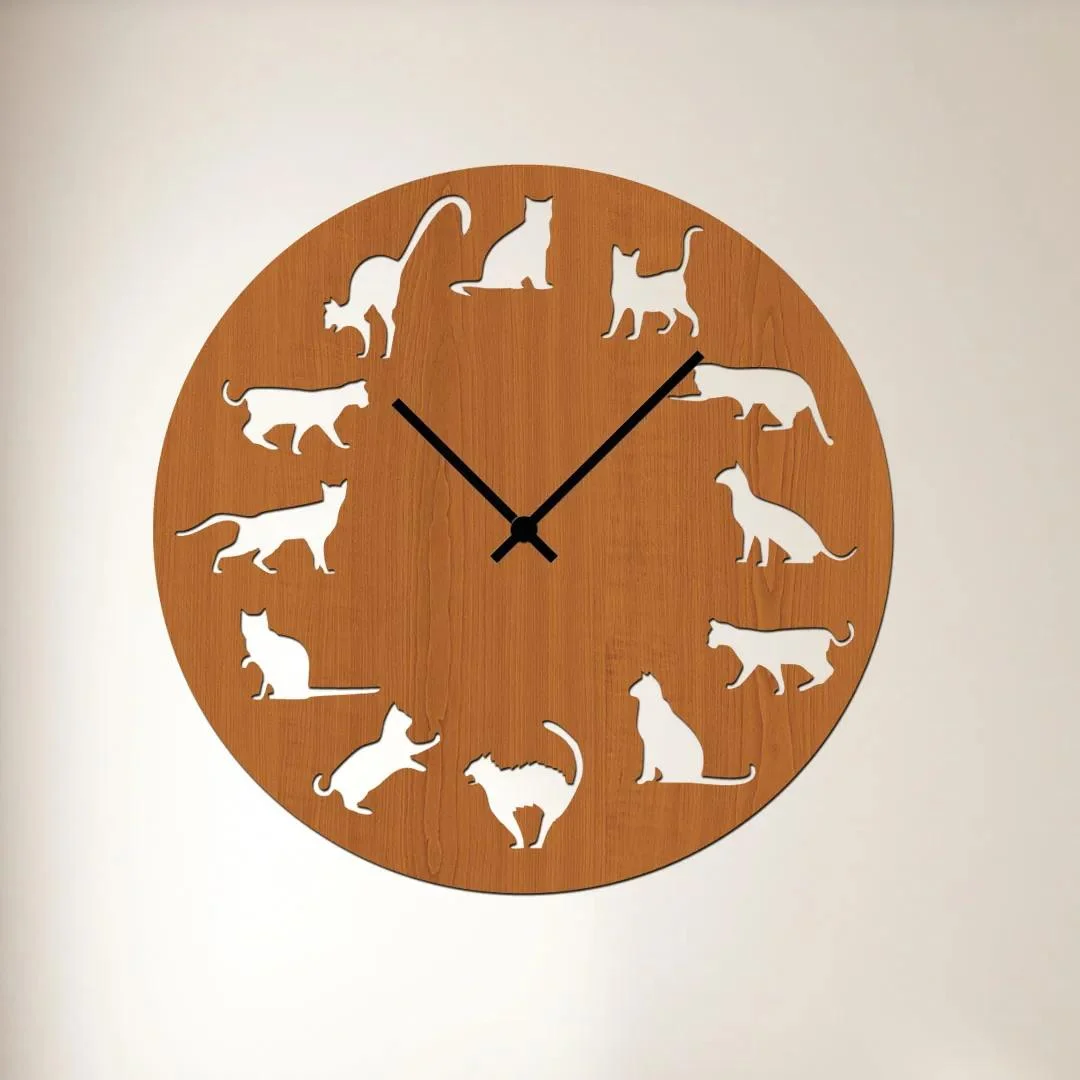 Oživte svůj interiér unikátními nástěnnými hodinami s motivem koček. Vyberte si z variant v odstínu třešně nebo dalších barevných dekorů a doplňte je o černé nebo zlaté ručičky, které dokonale ladí s moderním i tradičním stylem.