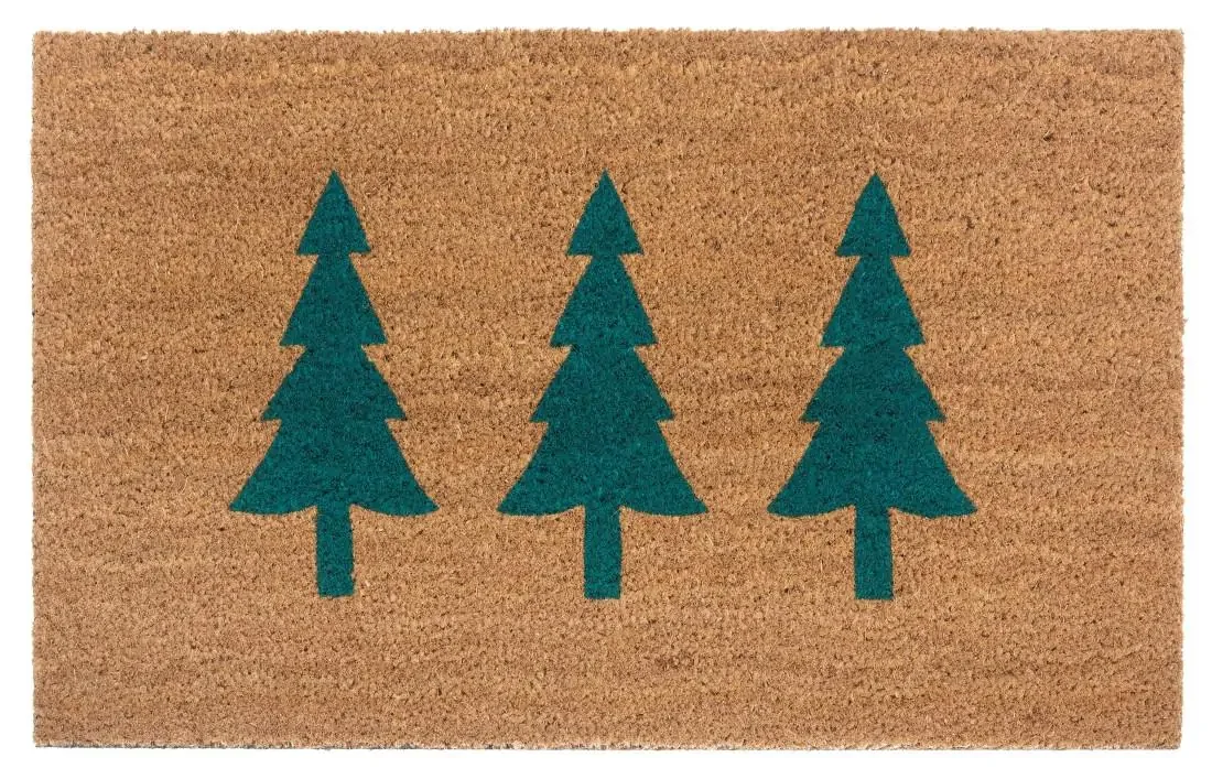 Stylová kokosová rohožka s motivem třech jehličnanů skvěle doplní vstupní dveře po celý rok. 100% kokosového vlákna zajišťuje drsný povrch, který rychle setře nečistoty z vašich bot. Vlas rohožky má výšku kolem 45 mm, díky čemuž hrubší textura efektivně zachycuje špínu už při prvním kroku. Na spodní straně je latexová vrstva, která rohožku pevně drží na podkladu a zabraňuje jejímu posuvu. Údržba je nenáročná: rohož vyklepat, vysát a při silnějším znečištění použít kobercovou pěnu pro důkladné čištění. Pro větší odolnost a dlouhou životnost je vhodná pro venkovní použití po celý rok a její nadčasový vzhled se hodí k mnoha vstupům.
