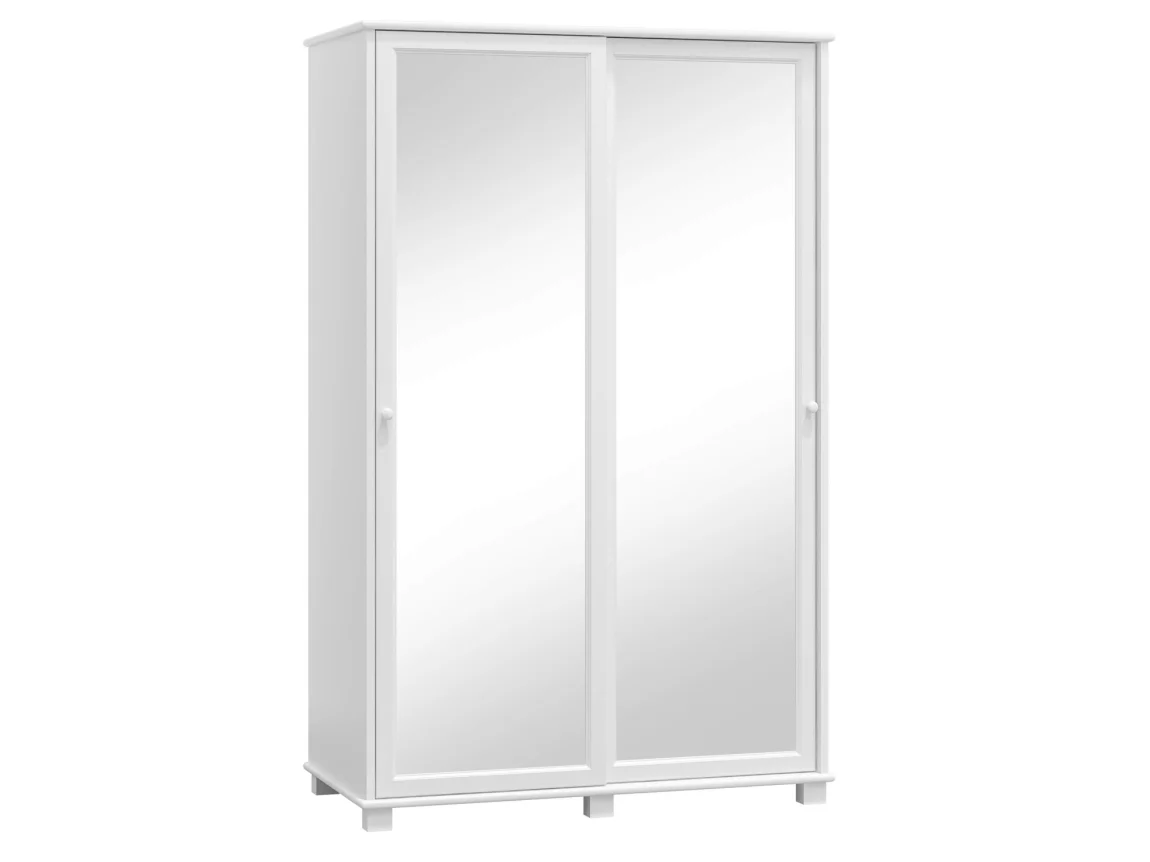 Kombinovaná šatní skříň BHAGIRA 7 s integrovaným zrcadlem a posuvnými dveřmi je ideálním řešením pro moderní ložnici. Je vyrobena z masivní borovice se 2 cm silnou deskou a bíle mořeným povrchem, který dodává nábytku svěží a nadčasový vzhled. Rozměry: 133 cm na šířku, 190 cm na výšku a 60 cm na hloubku; nožky 5 × 5 cm zajišťují stabilitu a usnadňují úklid pod nábytkem. Dodáváno v demontu, montáž je rychlá a bezproblémová. Navíc skříň poskytuje dostatek úložného prostoru pro vaše oblečení a doplňky, díky čemuž ušetříte místo v ložnici.