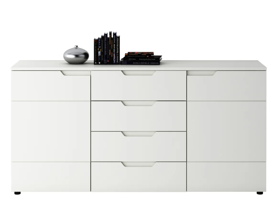 Elegantní komoda APPALACH 2D4S v provedení bílá s vysokým leskem nabízí praktický úložný prostor pro vaše věci. Rozměry jsou: výška 81,4 cm, šířka 160 cm a hloubka 40 cm, což zajišťuje dostatek místa a současně nenaruší dispozici místnosti.