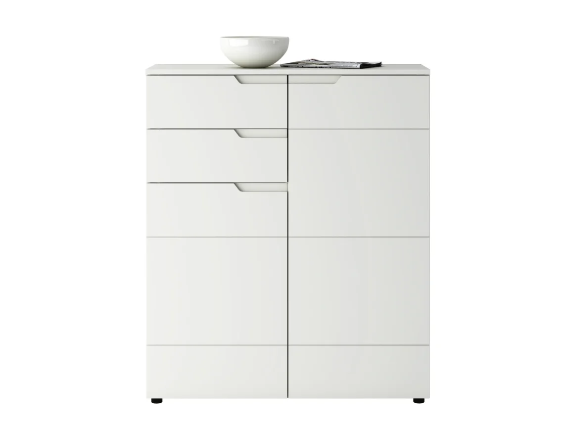 Komoda APPALACH v provedení bílý lesk vnáší do interiéru moderní a svěží vzhled. Rozměry: 119,8 cm výška, 100 cm šířka a 40 cm hloubka nabízejí dostatek úložného prostoru. Korpus je vyroben z odolného lamina a dvířka z MDF HG 19 mm, což posiluje pevnost a zaručuje dlouhou životnost.