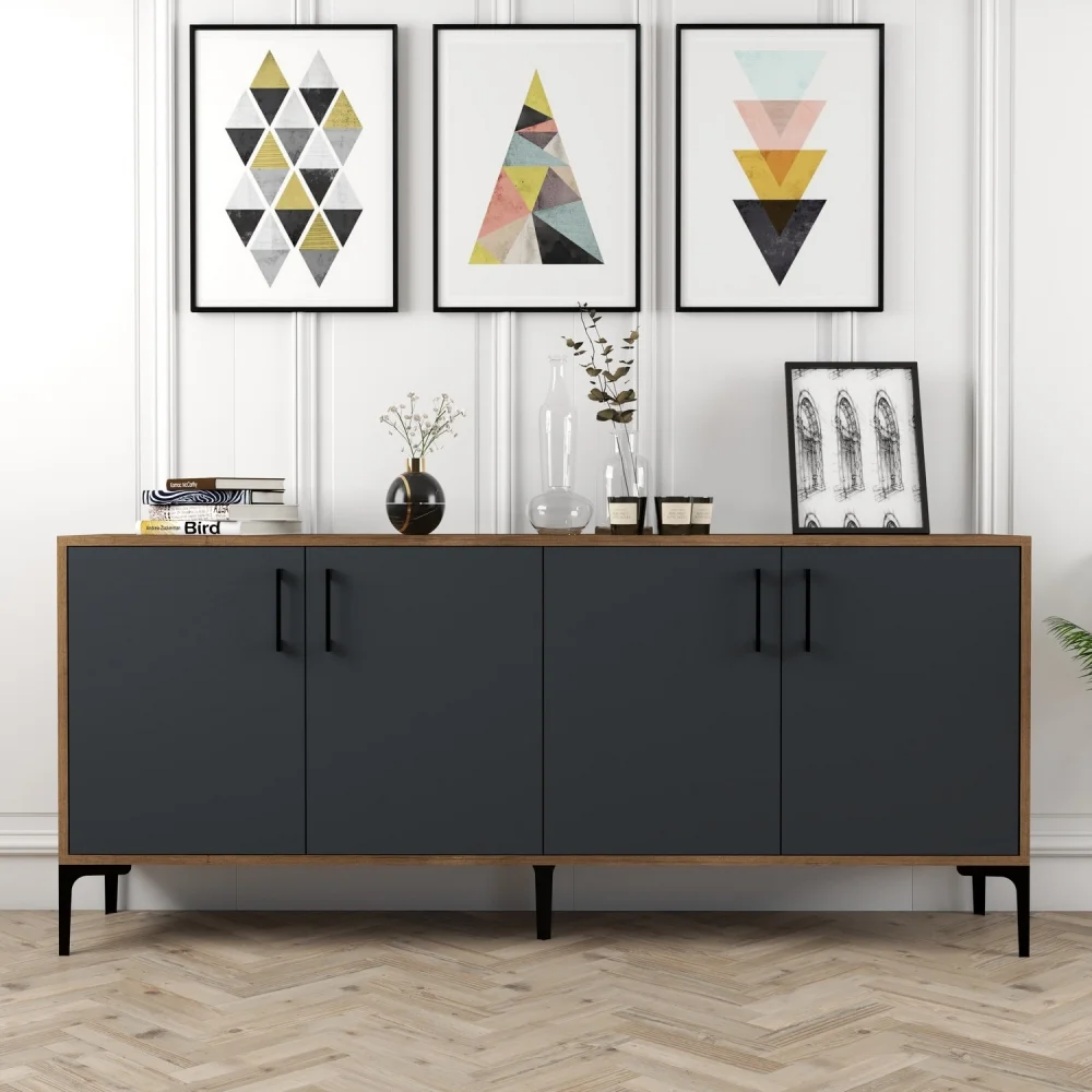 Komoda BARNEY je vyrobená z melaminované dřevotřísky o tloušťce 18 mm, která zaručuje pevnou a odolnou konstrukci. Rozměry činí šířku 180 cm, výšku 78 cm a hloubku 35 cm, poskytující dostatek úložného prostoru. Pro design byla zvolena kombinace barev vlašský ořech a antracit, jež dodávají moderní a nadčasový vzhled. Dodáváno v demontu, ale montáž není složitá a díky melaminové povrchové úpravě je údržba jednoduchá a povrch snadno očistíte.