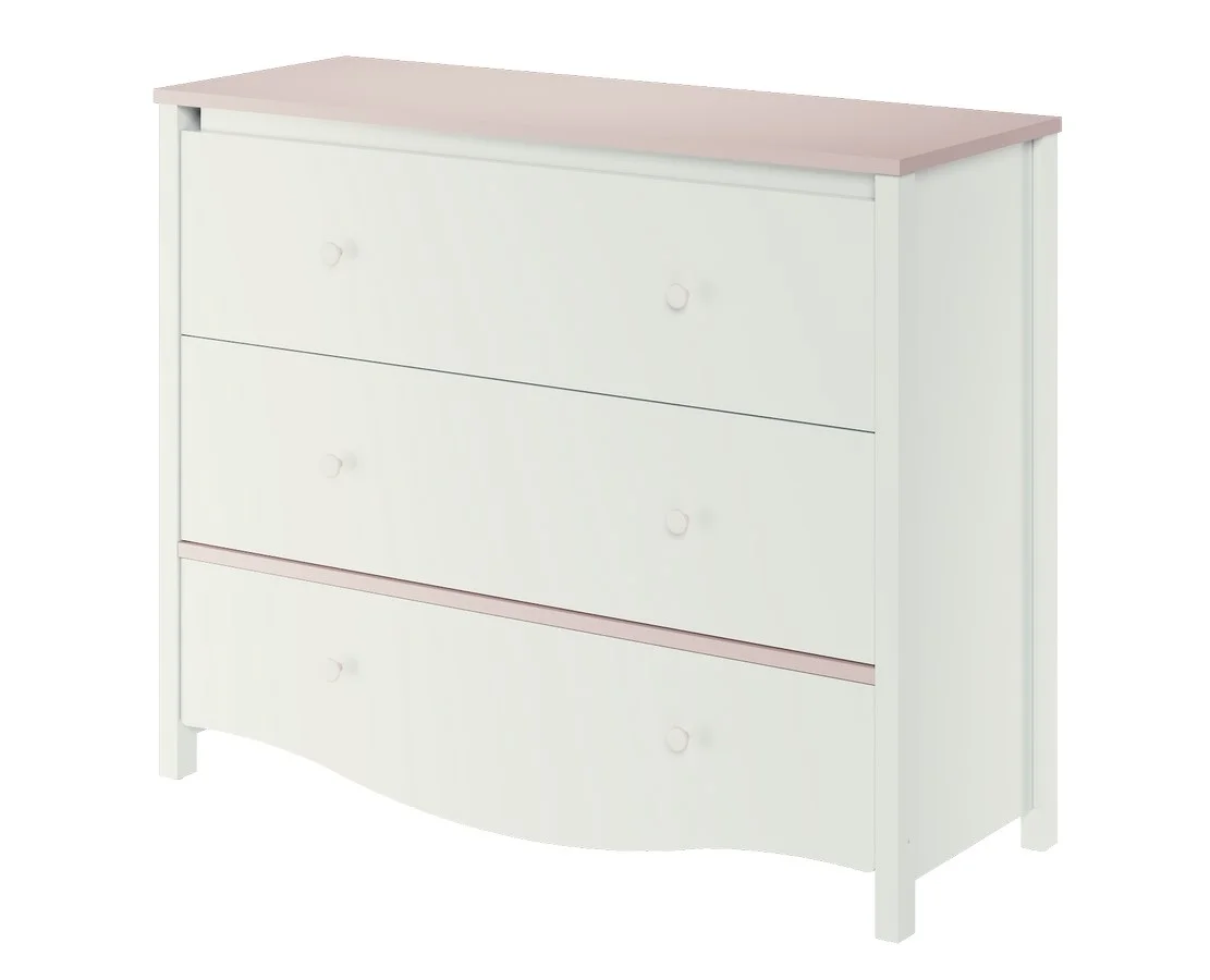 Komoda CHAUL 3S nabízí tři praktické zásuvky a je vyrobena z LTD lamina s ABS páskou na hranách pro dlouhou životnost. Dolní část velké zásuvky má jemný oblý výřez, který usnadňuje uchopení a dodává kusu jemný, hravý vzhled.