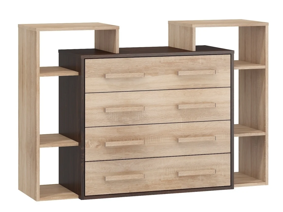 Komoda DORINDA 4S v kombinaci tmavého dubu sonoma a světlého dubu sonoma dodá interiéru moderní vzhled. Rozměry (š x v x h): 127 x 86 x 41 cm. Vyrobena z LTD s ABS hranami pro pevnost a dlouhou životnost.