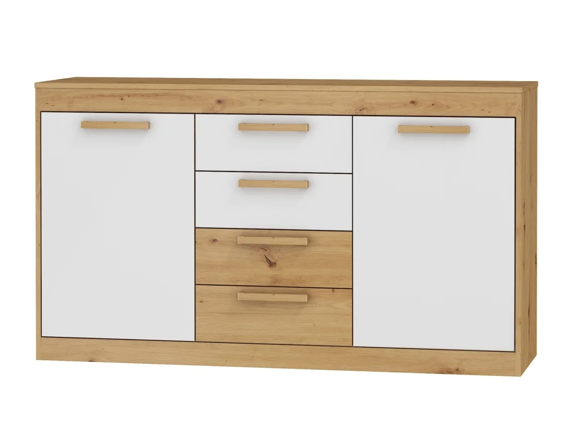 Kombinovaná komoda Gatton 2D4S nabízí praktické rozdělení úložného prostoru díky dvěma dvířkům a čtyřem zásuvkám. Provedení v kombinaci dub artisan a bílého lesku dodává moderní vzhled a rozměry 148 x 85 x 44 cm.