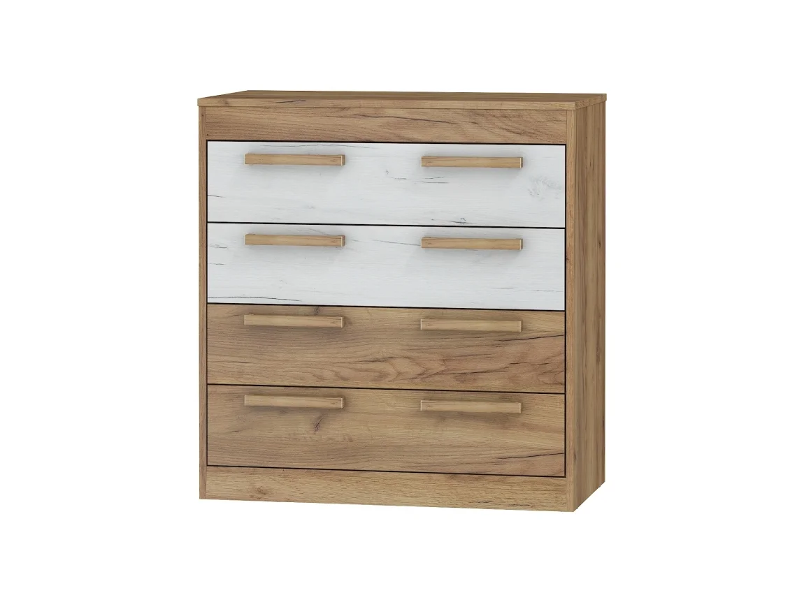 Praktická komoda GATTON 4S nabízí čtyři prostorné zásuvky, do kterých pohodlně uložíte oblečení, doplňky i další drobnosti. K dispozici je v provedení craft zlatý a craft bílý, které skvěle doplní moderní i tradiční interiéry.